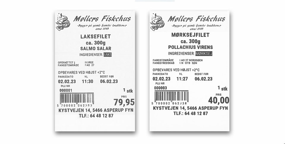 Møllers Fiskehus er på forkant med evt. fremtidige krav om mærkning med næringsindhold, for den opgave kan SM-5300X også håndtere. Birgitte forklarer; ”Vi besluttede at købe SM-5300X, selvom den måske var lidt dyrere. Det gjorde vi, fordi SM-5300X også kan klare mærkning med næringsindhold, som kan blive et krav til os - så der har vi garderet os med en fremtidssikret løsning”.