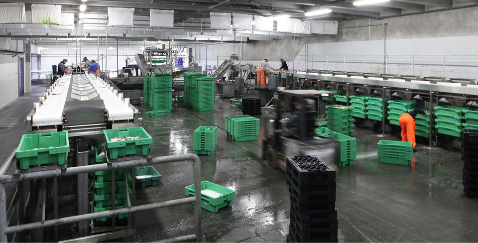 Den blandede fangst på i gennemsnit 20 tons pr. fiskekutter bliver ved modtagelsen på kajen leveret i kasser. Efter en manuel grovsortering i arter pr. kasse, bliver kasserne automatisk tippet op på maskinen, som sorterer fiskene og fordeler dem i nye kasser med labels på. Hver batch får et unikt lot-nummer.