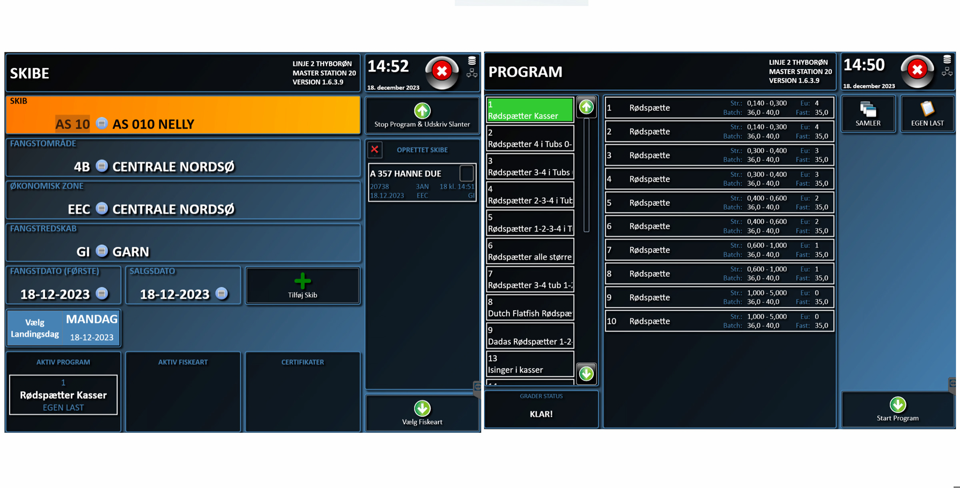 Sorteringen foregår på en graderlinie med ScanPlant NG MES, som sikrer, at fiskekutteren får den nøjagtige afregning og at myndighederne i samme omgang får den nødvendige dokumentation.