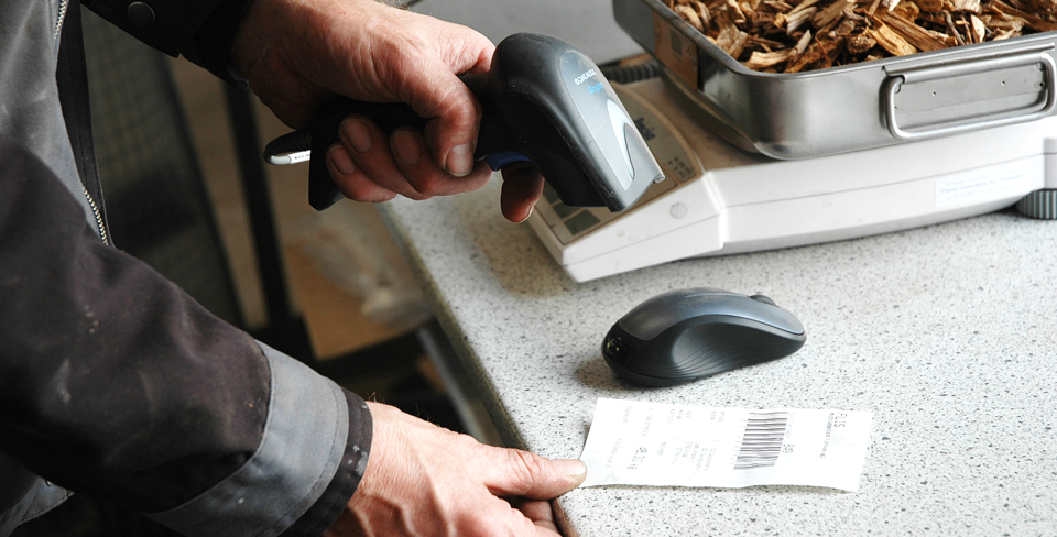 I forbindelse med vejning af hele bilen udtages der en prøve af den leverede flis - denne prøve afvejes på en laboratorievægt og vægten sammenkobles i ScanX.Net med den totale indvejede flisleverance.