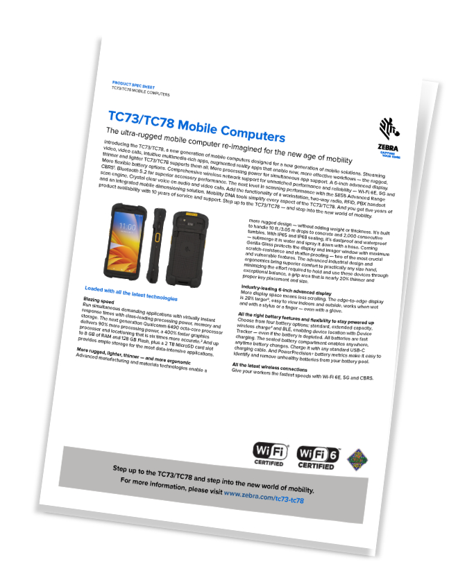 TC73 er en wi-fi 6E håndholdt computer, som er udviklet til nye opgaver inden for mobilitet.