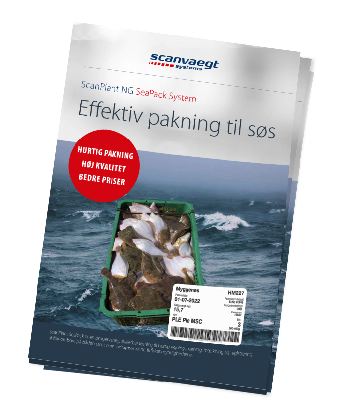 ScanPlant NG SeaPack er en brugervenlig, skalerbar løsning til hurtig vejning, pakning, mærkning og registrering af fisk ombord på båden samt nem indrapportering til fiskerimyndighederne.