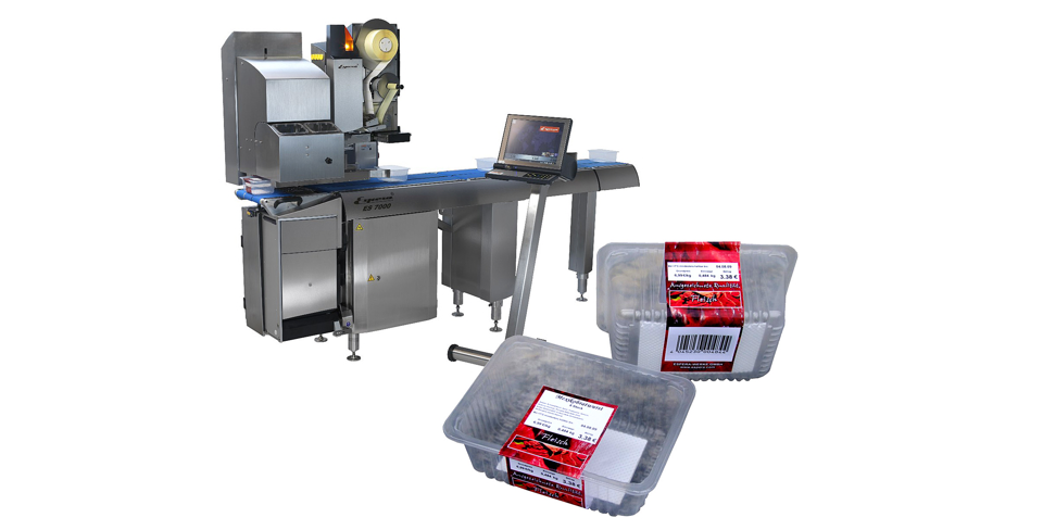 ES7700 C-Wrap er et nyt automatisk veje- og etiketteringssystem, som kan sætte etiketten rundt om 3 sider på pakken – etiketten placeres henover både top, side og bund. Etiketten sidder perfekt og slutter helt tæt ind til pakken - selv hvis pakken har fremstående kanter.