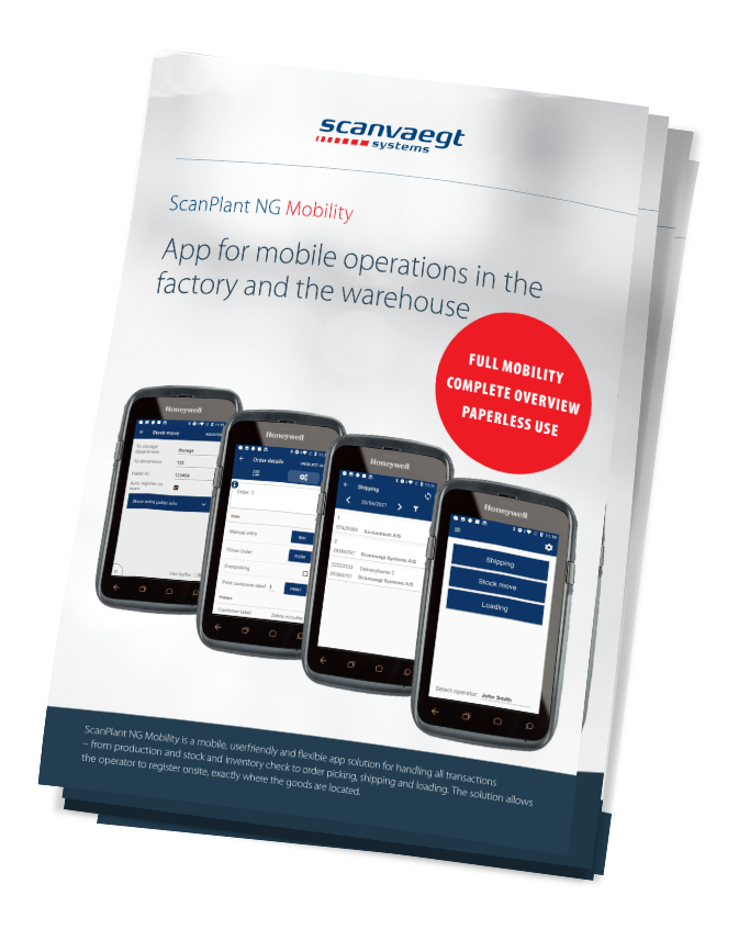 ScanPlant Mobility keeps track of all inventory while giving operators total mobility. The system offers full online integration and paperless functionality—ensuring real-time data registration, eliminating time-consuming paperwork, and providing transparency in all warehouse processes.