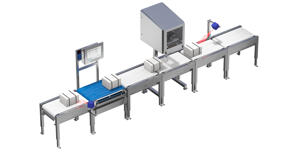 • Belt scale for weighing the carton and weighing terminal for weight registration and communication with the IT system