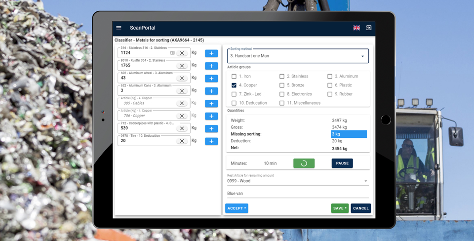 Scanvaegt delivers complete solutions for the inbound weighing, identification, and registration of iron, scrap, metals, and similar return materials — with full IT integration and ADS reporting of waste types to the authorities.