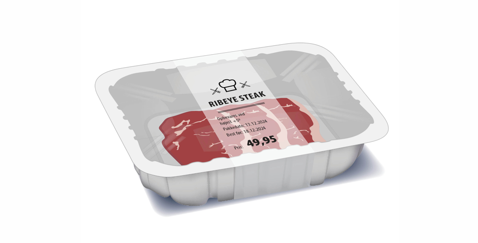 Each operator takes “their” retail product from the conveyor belt, weighs it, packs it into a plastic tray, prints and applies the product label, and then sends the tray further along the conveyor.